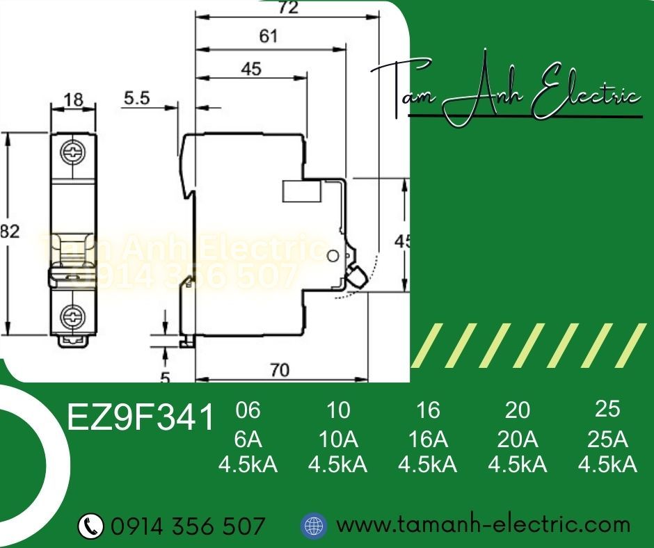 Automat 1P 4.5kA - Át tô mát 1 pha 4.5kA - Automat 1P EZ9F Schneider