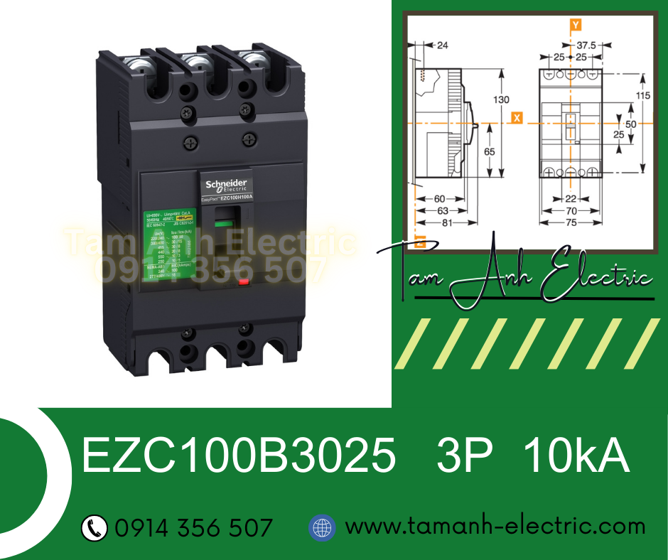 Automat Schneider MCCB EZC100B3015 - Át tô mát khối Schneider 3P 15A 10kA - Automat MCCB 3P 15A 10kA