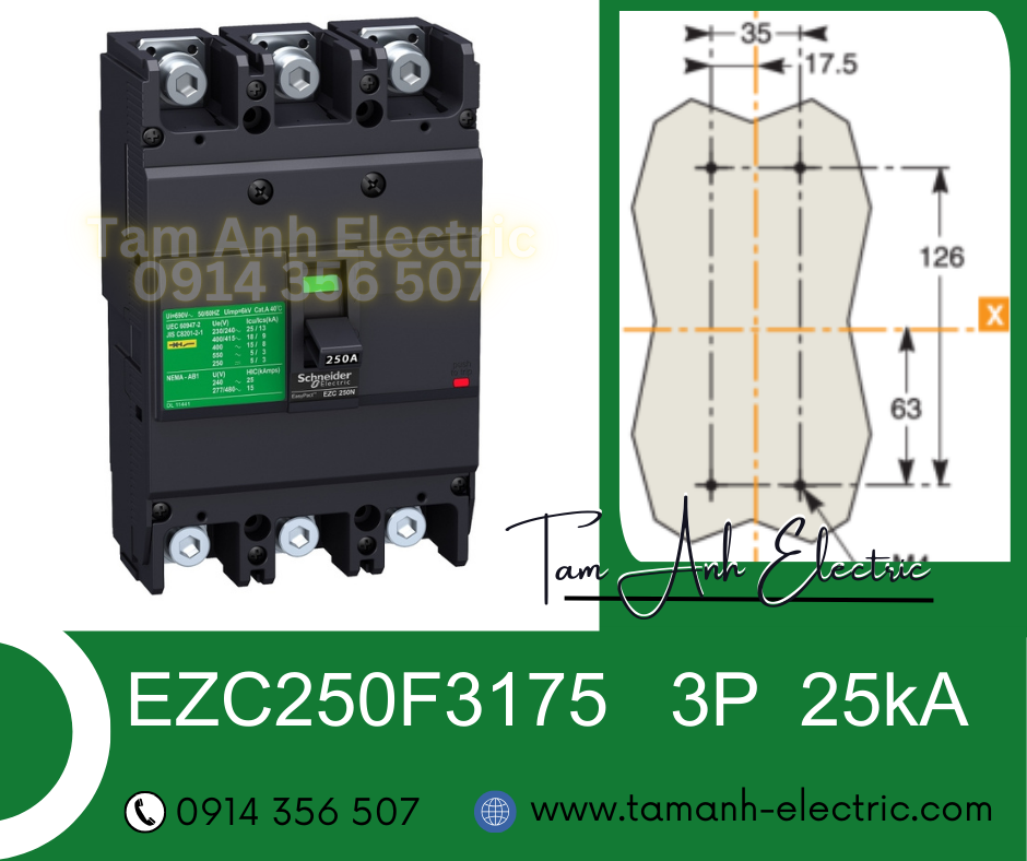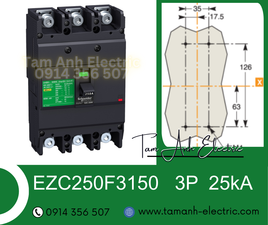 Automat Schneider MCCB EZC250F - Át tô mát khối Schneider 3P 125A - 250A 36kA - Automat MCCB 3P 125A 250A 36kA