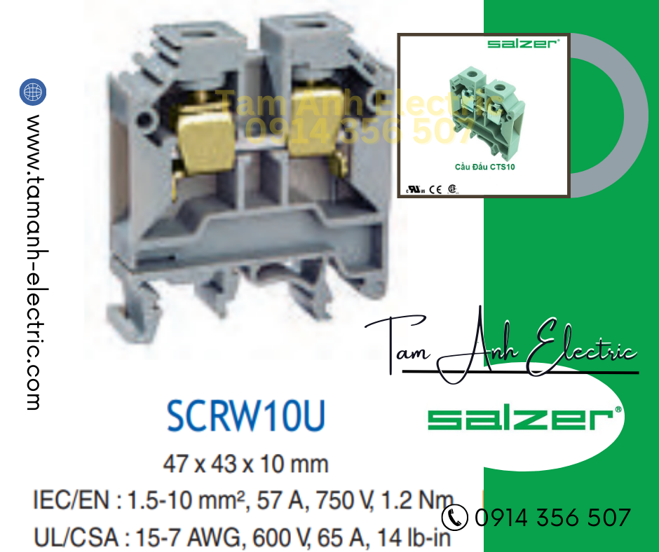 Cầu đấu dây mắt rời CTS10 - Cầu đấu mắt rời 1.5-10mm² 57A 750V - Cầu đấu mắt rời dùng cho dây 10mm - Cầu đấu connectech Salzer