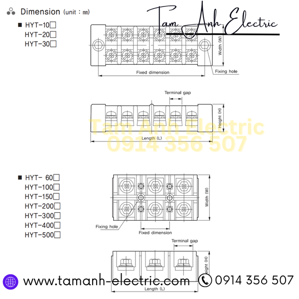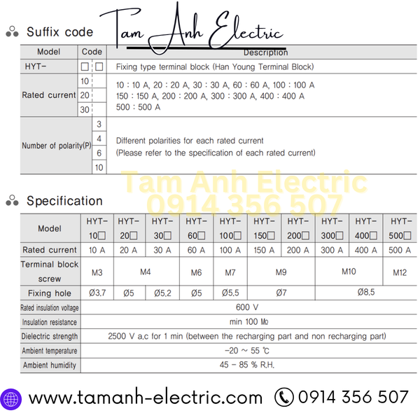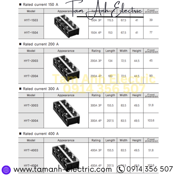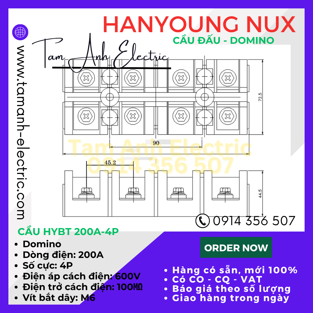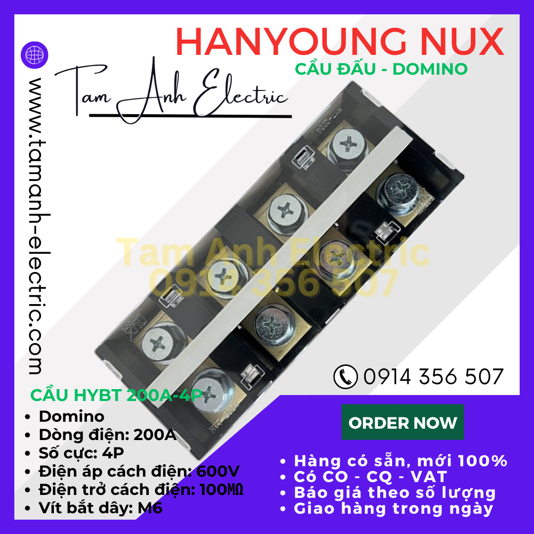 Cầu đấu Domino HYT-2004 HanYoung Hàn Quốc - Cầu Domino HYT 200A 4P HanYoung - Cầu 200A 4 mắt Hàn Quốc