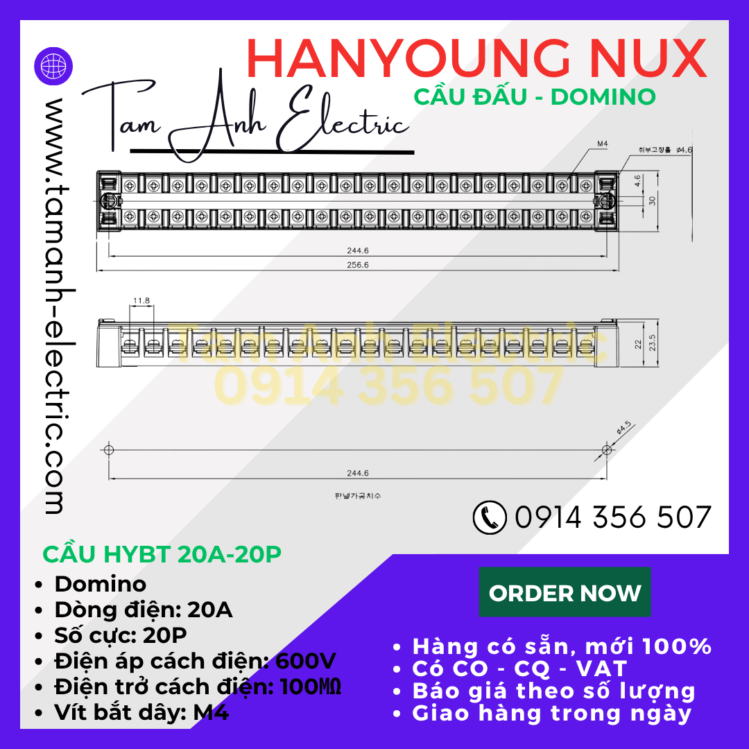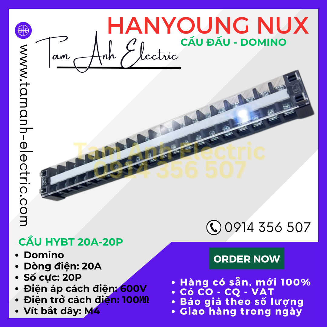 Cầu đấu Domino HYT-2020 HanYoung Hàn Quốc - Cầu Domino HYT 20A 20P HanYoung - Cầu 20A 20 mắt Hàn Quốc