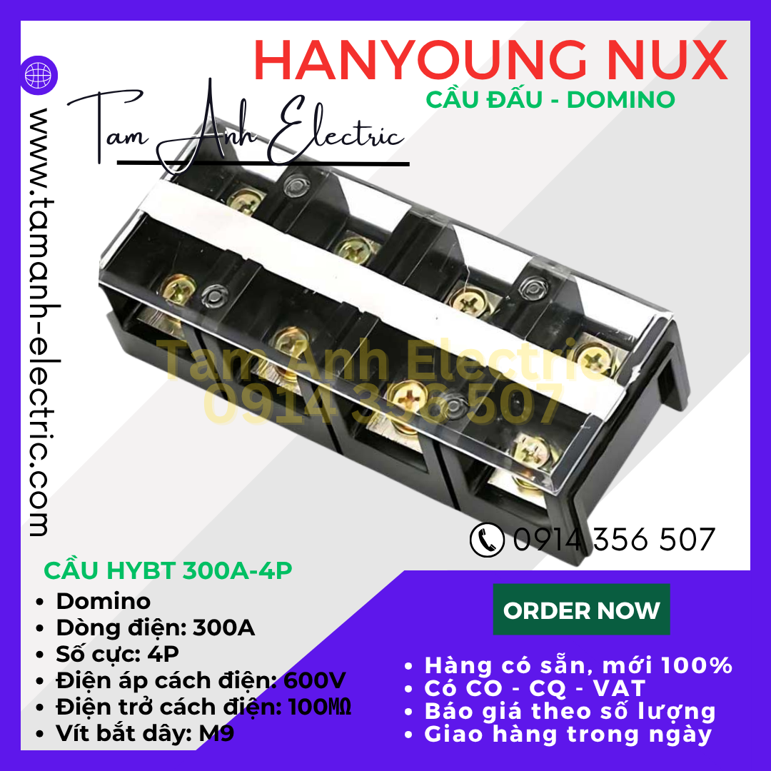 Cầu đấu Domino HYT-3004 HanYoung Hàn Quốc - Cầu Domino HYT 300A 4P HanYoung - Cầu 300A 4 mắt Hàn Quốc