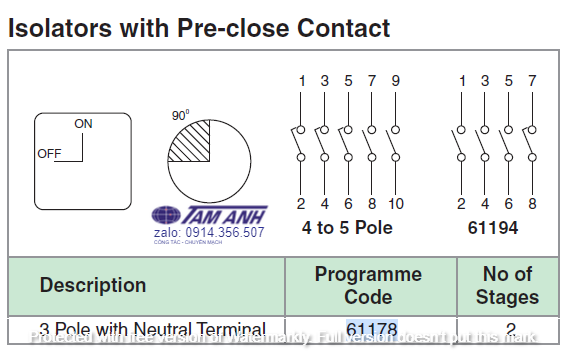 Chuyển mạch On Off - Công tắc xoay TP16 61178 - Chuyển mạch 2 vị trí Ấn Độ - Chuyển mạch Salzer