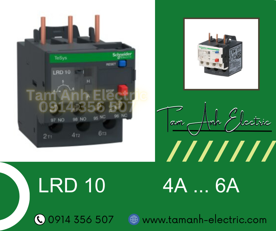 Relay Nhiệt Schneider - LRD Tesys D series - Đuôi Nhiệt Schneider LRD10 (4-6)A - rơ le nhiệt schneider