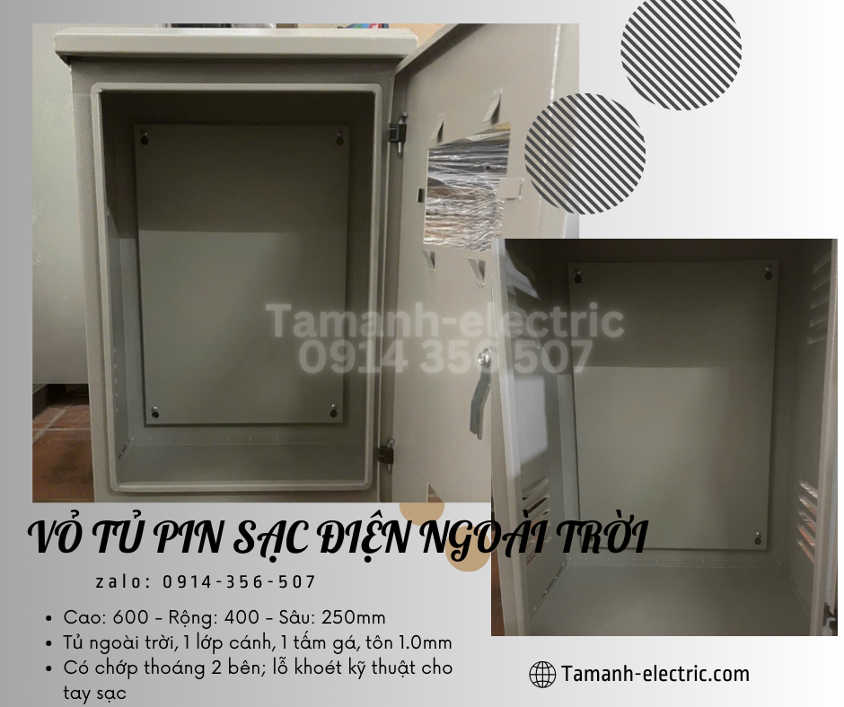 Vỏ tủ Pin sạc điện ngoài trời - Vỏ tủ 400x600x250 ngoài trời - Tủ bảo vệ pin sạc điện ngoài trời